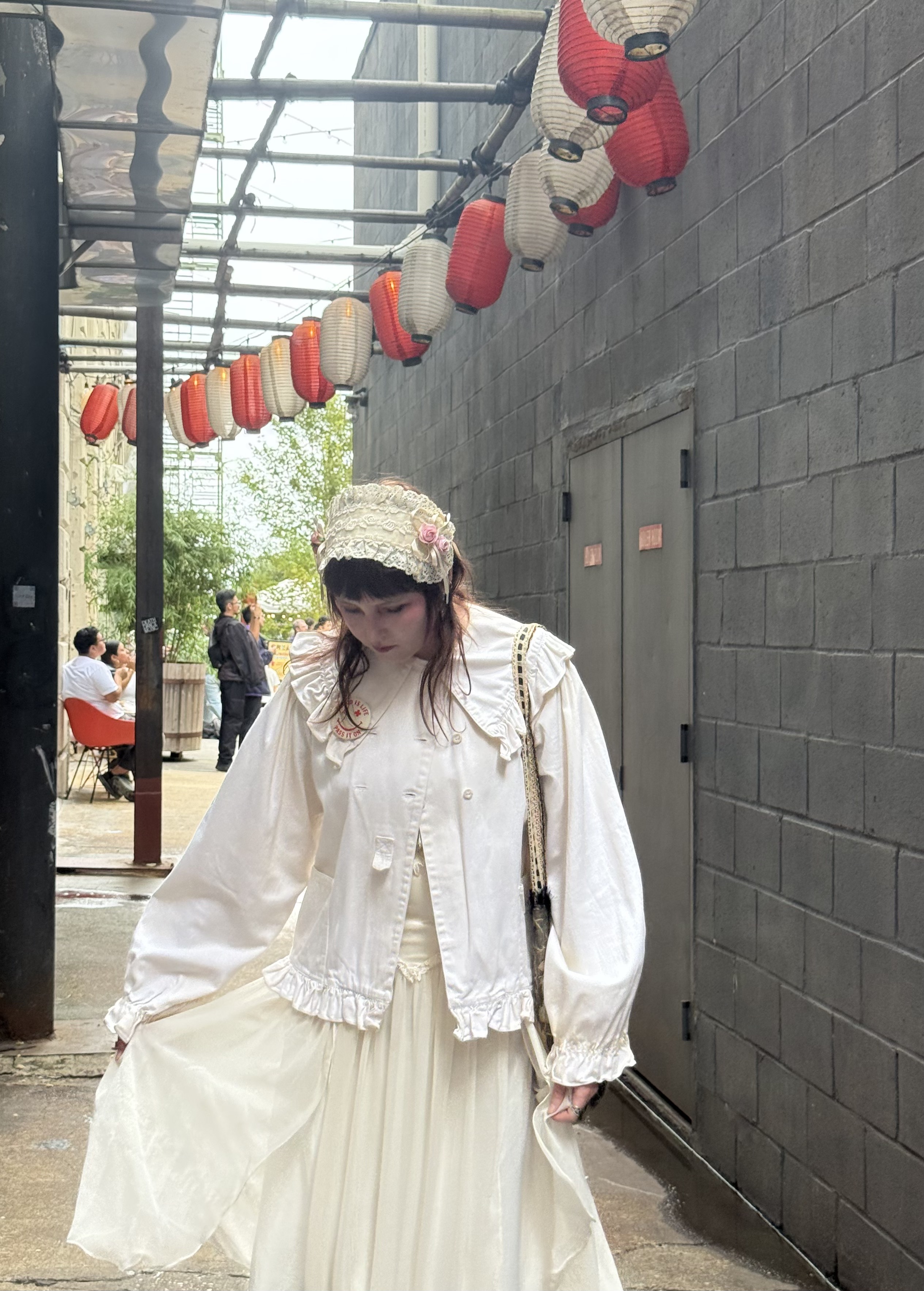 Point of fashion: I was going to "Magical girls festival" at Japan village with a friend. I wanted to wear this Innocent World headdress so I made a cult party kei inspired outfit around it. I love this vintage jacket by Katharine Hamnett I've had for years, it's so special to me. I used to work at a thrift store so I collected so many cool things. (to me lol) And I was happy to wear this old blood donor pin I've also had for a long time but never wear on anything for fear of losing it.