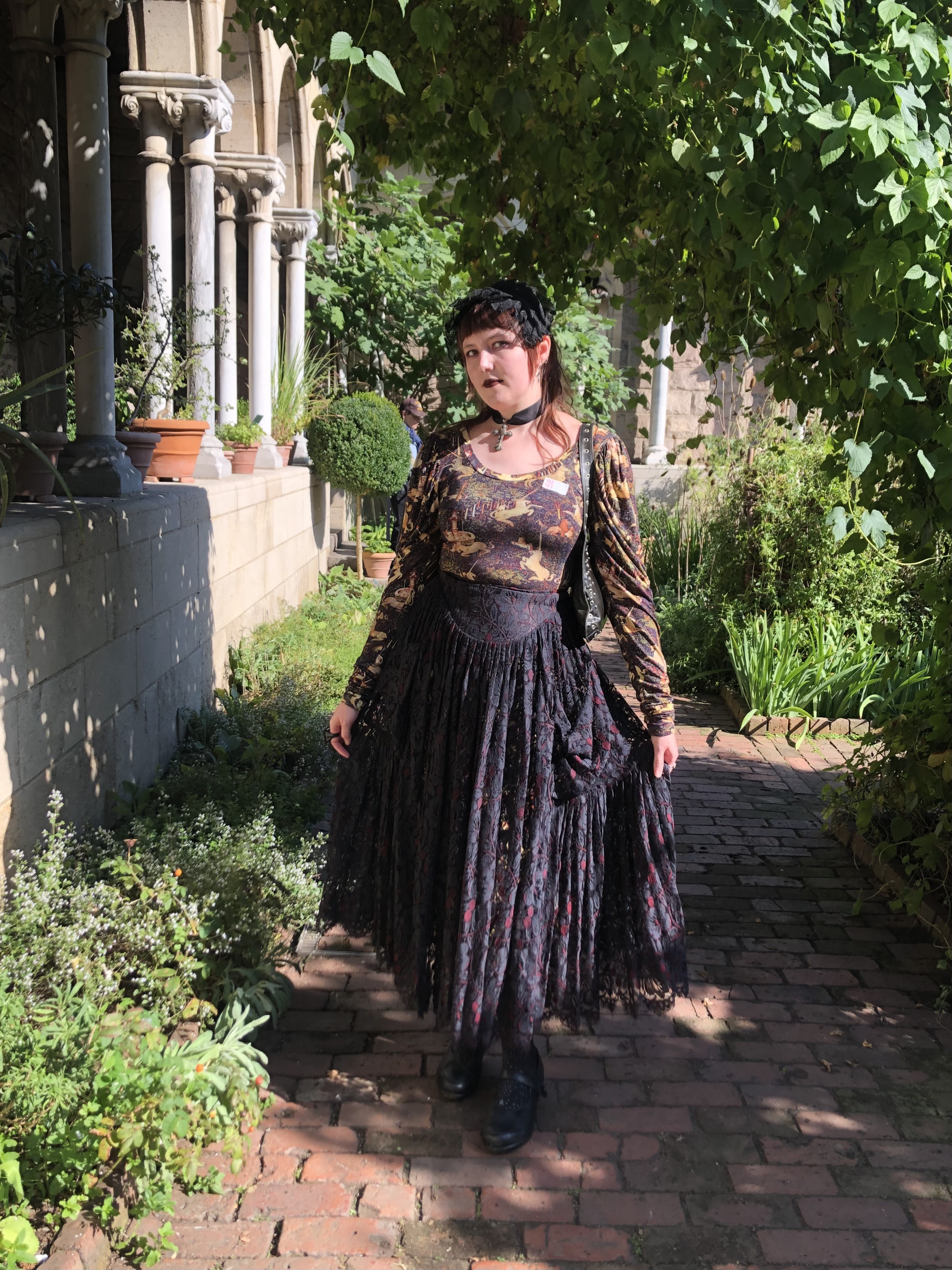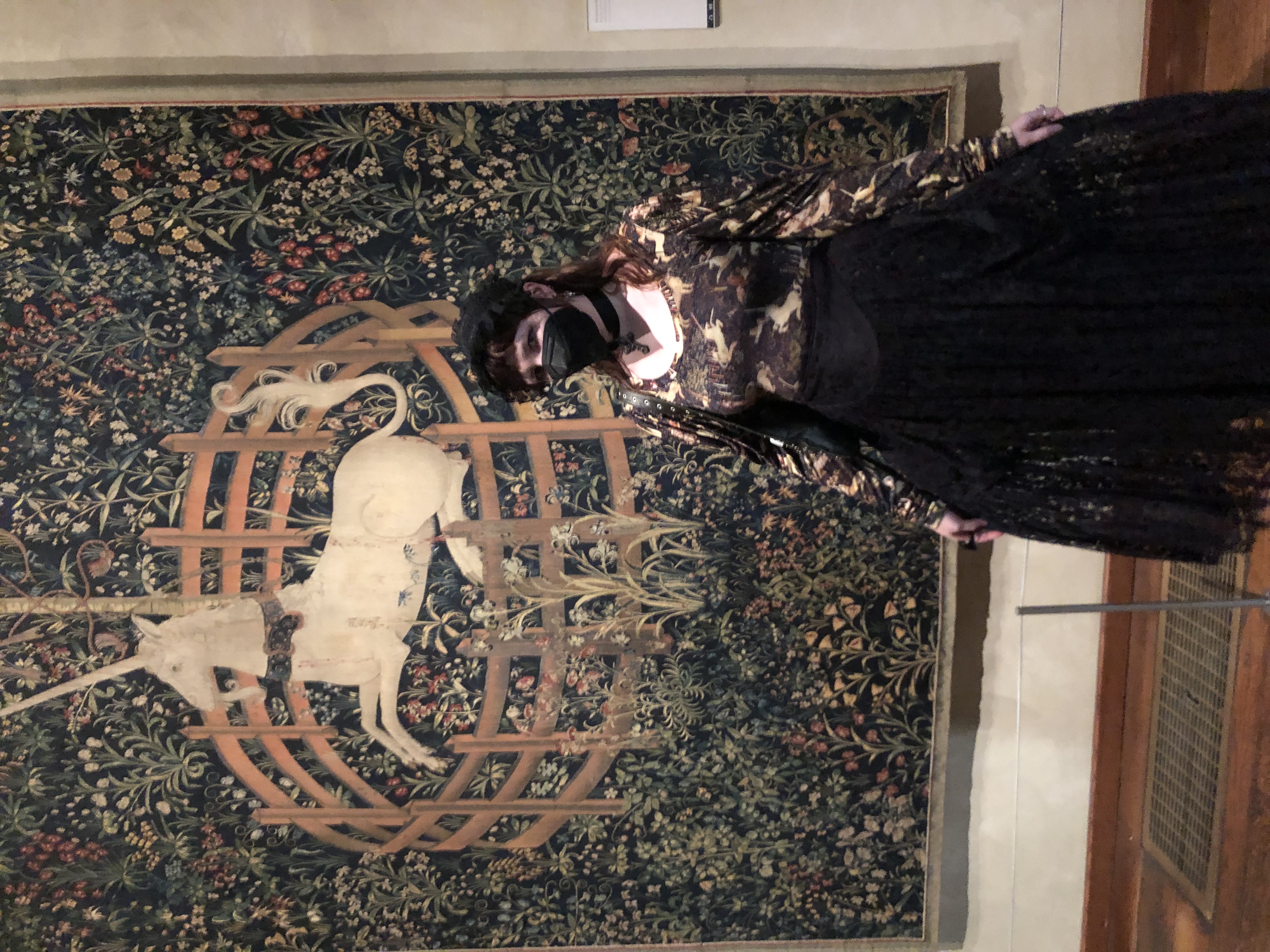 Point of fashion: I went to my first lolita meetup in a looong time. Probably 10 years! We were going to the Met Cloisters, which is a beautiful medieval museum that houses the Unicorn tapestries. So of course, what better time to wear my unicorn tapestry dress from Samantha Pleet. I got this dress at a sample sale and it was heavily discounted due to a missprint, so I was happy to find it. I paired it with this black lace Norma Kamali skirt which is one of my favorite things to wear, and a black lace headdress, for an oldschool aristo coordinate. I'm looking forward to going to more lolita meetups in the future.